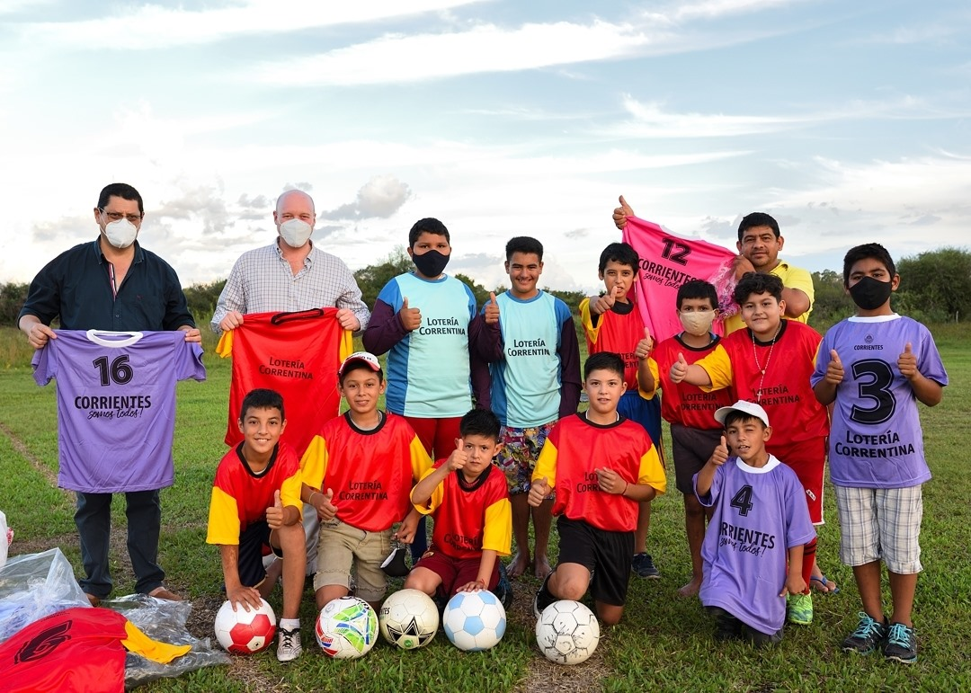 El concejal Nicolás Domínguez y el viceintendente José Altamirano entregaron pelotas y camisetas a equipos de fútbol juvenil de Arroyo Pirayuí y Arroyo González. Gracias al Gobernador Gustavo Valdés, Lotería Correntina y al Director Técnico de los chicos, Daniel Ramirez, por seguir apoyando y fomentando el deporte entre los jóvenes.