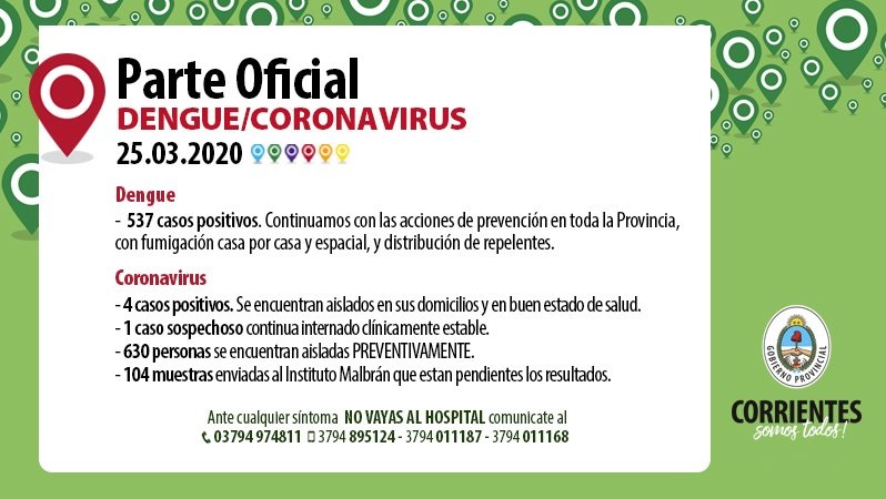 Informe oficial del Gobierno de la Provincia de Corrientes Navegación de entradas Procedimiento policial en 9 de julio deja como saldo un demorado Coronavirus: alistan hospital de campaña y la situación actual estaría “controlada”