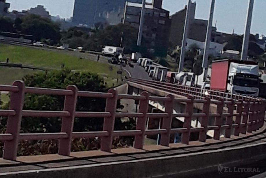 La larga cola de camiones llega hasta la máxima la altura del puente para quienes vengan de Resistencia a Corrientes, y hasta 3 de abril y Mendoza, para quienes vayan a Chaco.