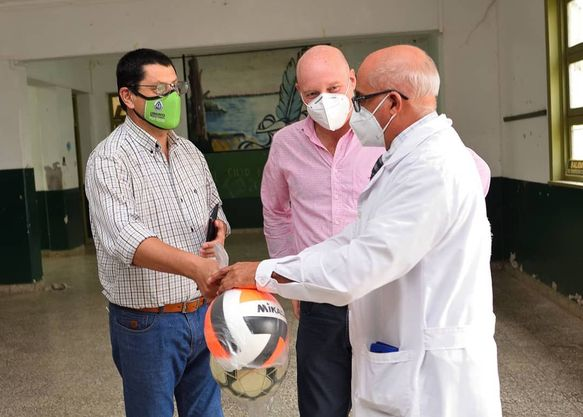 El concejal Nicolás Domínguez, el viceintendente, José Altamirano y la delegada de Desarrollo Social Yanina Ortíz, entregaron pelotas de fútbol y voley para los alumnos de la Escuela N° 821, Valentín Insaurralde de Arroyo González. Además estuvieron de recorrida por la institución inspeccionando las reparaciones llevadas a cabo por el gobierno provincial.