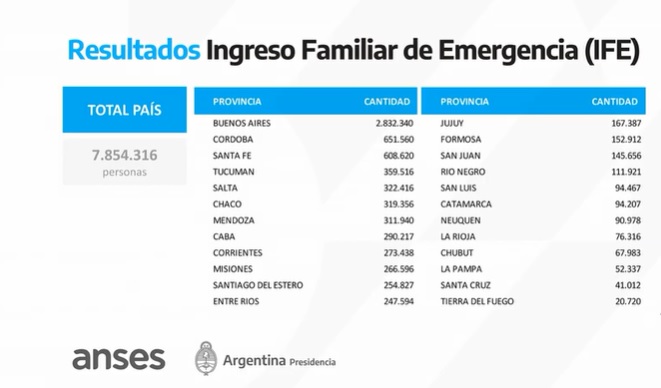 El titular de la Anses, Alejandro Vanoli, informó este lunes que un total de 273.438 correntinos fueron habilitados para poder cobrar el Ingreso Familiar de Emergencia (IFE).