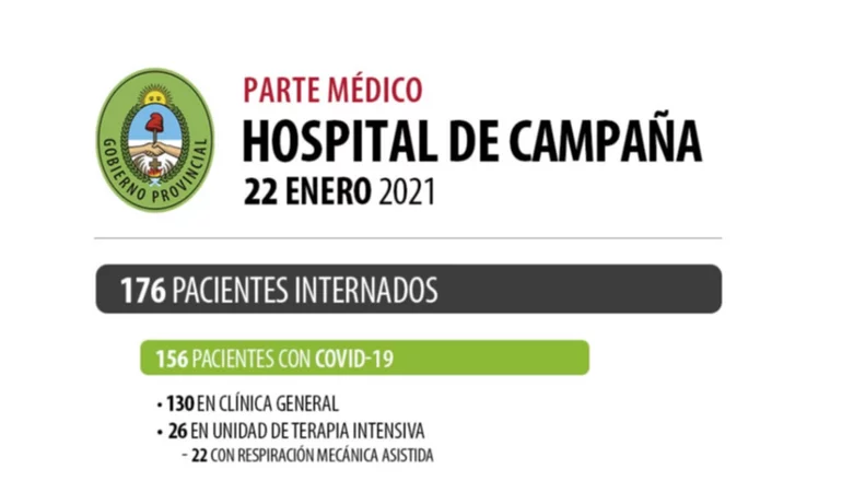 Este viernes el parte médico del Hospital de Campaña Escuela Hogar da cuenta de la recuperación de 7 pacientes que recibieron el alta, mientras que fallecieron 2 personas con resultado positivo para Covid-19.