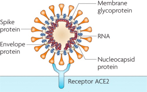 La puerta de entrada es un receptor llamado «ACE2» que hay en la membrana celular. La función natural de «ACE2» es regular la presión sanguínea.