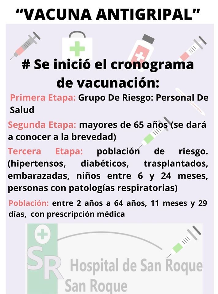 Desde su cuenta de facebook, el Hospital de San Roque dio a conocer el cronograma de vacuna antigripal.
